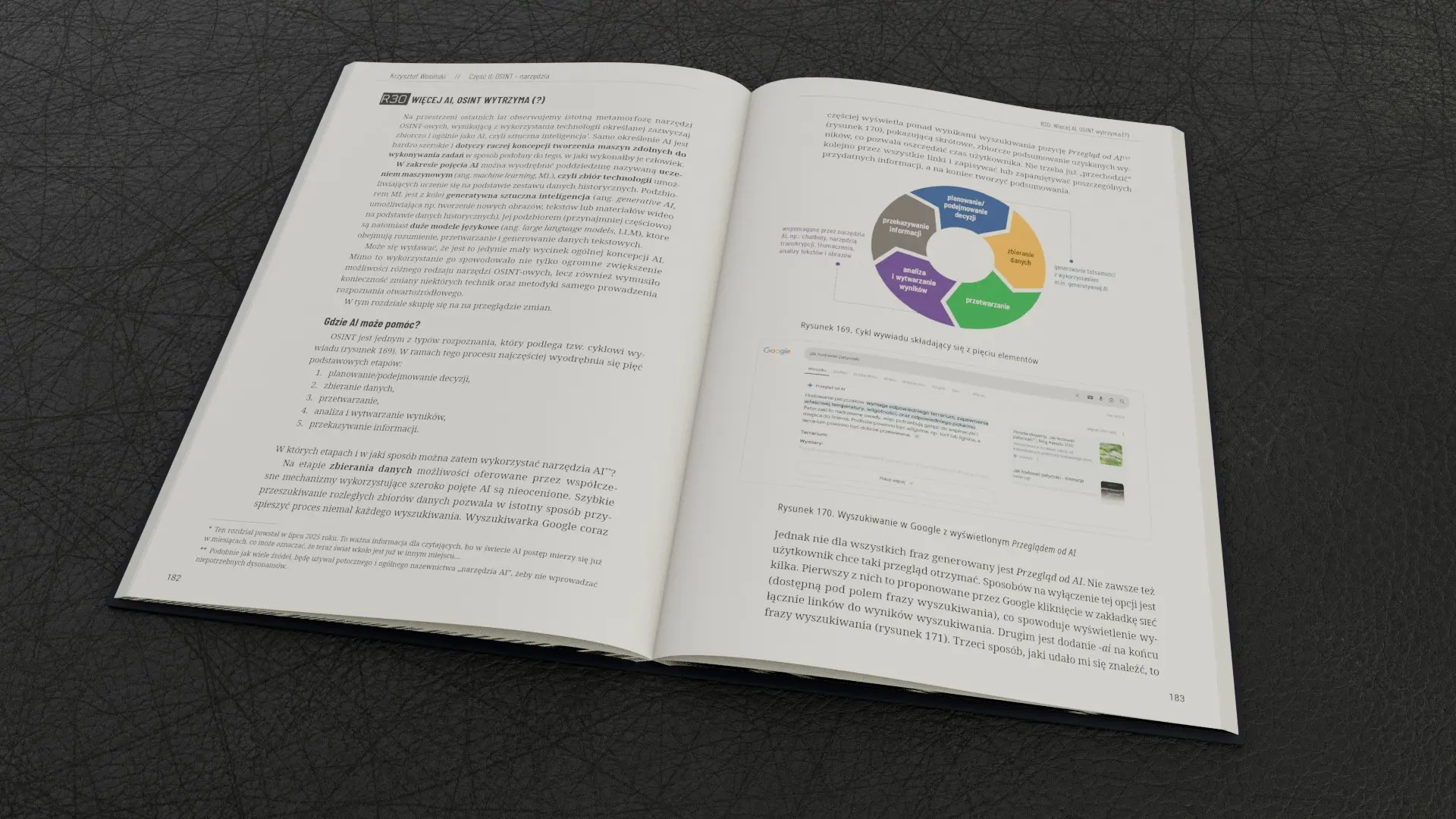 Książka przeznaczona jest dla wszystkich, którzy chcą się dowiedzieć, czym jest biały wywiad i jakie informacje można dzięki niemu uzyskać. Autor w zwięzły sposób opisuje techniki OSINT-u związane z wyszukiwaniem informacji w Internecie, prezentuje popularne narzędzia wykorzystywane podczas rekonesansu, takie jak GHunt, operatory Google Dorks, a także rozszerzenia i narzędzia AI przyspieszające pracę analityka. Dzieli się również swoimi trikami, które wykorzystuje w codziennej pracy, a ponadto podejmuje temat rekonesansu w biznesie wraz z podstawą obrony przed atakami socjotechnicznymi.